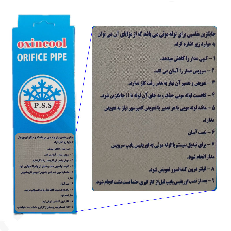 *قبل از خدید جهت انتخاب صحیح اورفیس حتما تماس بگیرید.باتشکر اورفیس پایپی کولر گازی 12 هزار جایگزین مناسب برای لوله مویی می باشد که از مزایای آن میتوان به موارد زیر اشاره کرد : کیپی مدار را کاهش میدهد سرویس مدار را آسان می کند تعویض و تعمیر آن نیاز به هدر رفت گاز ندارد کافیست لوله مویی حذف و به جای آن لوله یا U جایگزین شود مانند لوله مویی با هر تعمیر یا تعویض کمپرسور نیاز به تعویض ندارد نصب آسان برای تبدیل سیستم با لوله مویی به اورفیس پایپ سرویس مدار انجام شود فیلتر درون کندانسور تعویض شود بعد از نصب اورفیس پایپ قبل از گازگیری حتما تست نشتی انجام شود